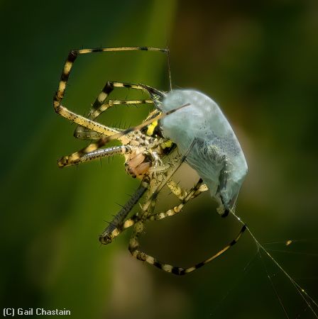 "Banded Garden Spider Prepares Lunch"